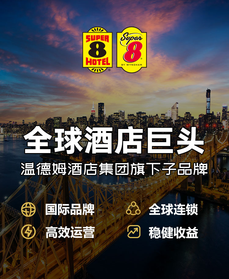 速8酒店是全球知名特许连锁酒店品牌之一,全球范围内运营3,000多家酒店,总房数超过180,000间。第一家速8酒店于1974年10月在美国南达科塔州的阿伯丁开业,当时收费标准为每晚8.88美元。