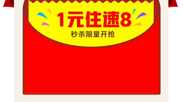 2.本专区商品禁止使用秒杀器或其他方式进行恶意秒杀,一经发现速8酒店会将用户信息(包括但不限于用户ID、电话号码等)列入黑名单,并长期取消其参与秒杀抢购活动的资格 。