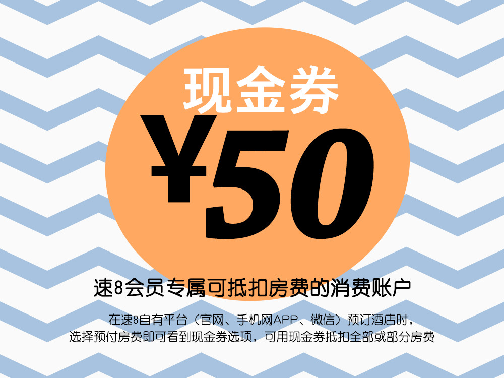 3、现金券充值码需通过速8官网/速8微信公众账号/手机网充值后使用;